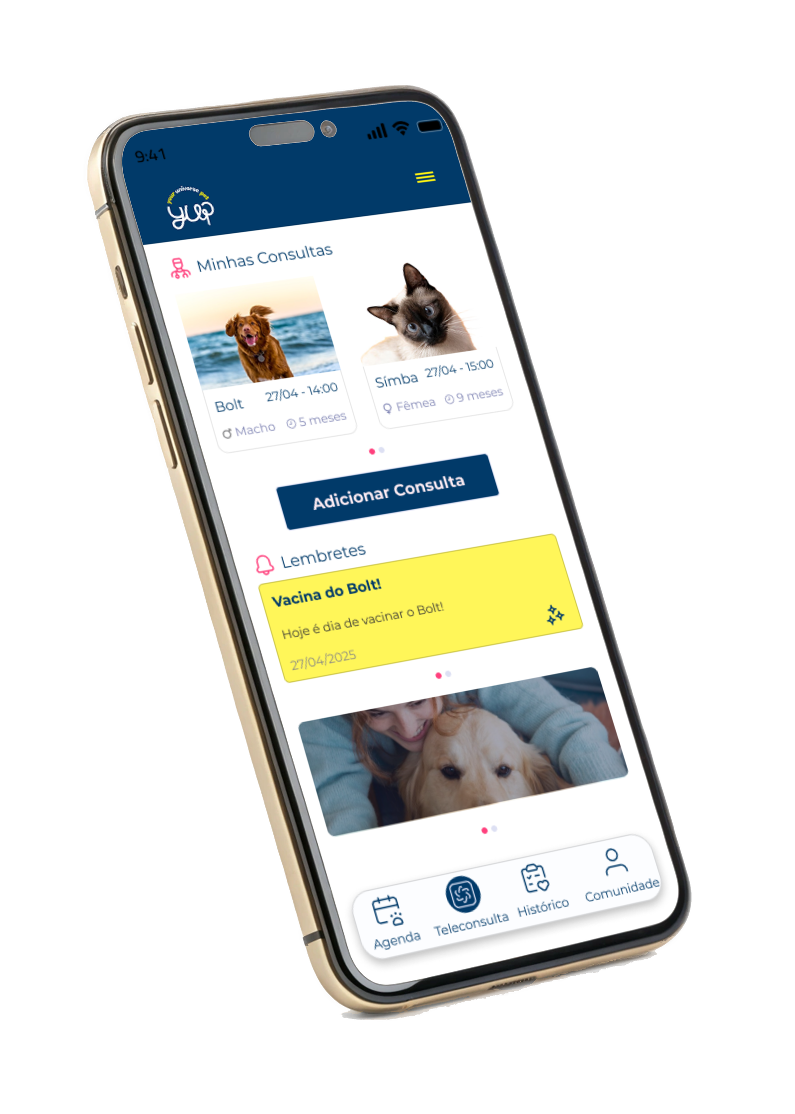 A YUP é um aplicativo que reúne informações genéticas dos seus pets como peso, idade e altura. Além disso, é possível armazenar exames, criar lembretes de vacinas e medicamentos. Outra funcionalidade é encontrar petshops, clínicas, passeadores, entre outros prestadores de serviço em nosso aplicativo. Tudo isso, com ajuda da nossa IA para tirar todas as suas dúvidas.